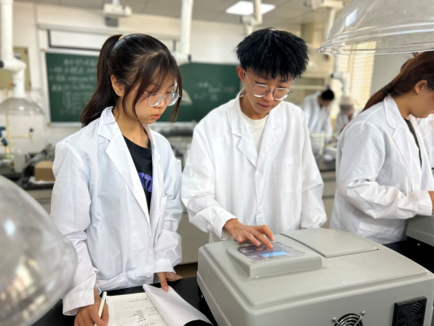 黄绵丽博士从紫外可见光谱测定的原理出发,详细说明了实验步骤、实验仪器、实验注意事项及实验应用场景,并进行现场演示实验操作,让同学们对整个实验流程有清晰的了解。接着,学生进行分组实验(授课专业:23高分子,总共54人,分5轮次;本轮次12位同学,分6组,每组2人)。整个公开课内容丰富、思路清晰,学生的实验实践能力得到锻炼,对紫外可见光谱原理及其仪器操作有了更深入的认识。