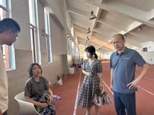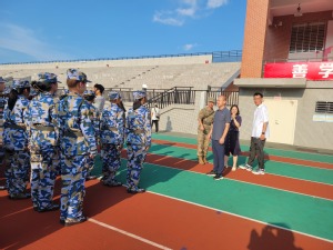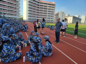 化工与材料学院党委书记郑少君,院党委副书记兼纪委书记林琦芳也来到军训现场了解军训情况。学院领导与同学们进行了亲切的交流,详细询问了军训期间的学习和生活情况,对同学们在军训中表现出的坚韧不拔、勇往直前的精神风貌给予了充分肯定。同时,领导们也希望同学们能够在军训中锤炼意志、培养同学们的爱国主义情感、集体荣誉感和纪律观念。随后,学院领导来到学院的大本营,慰问因身体不适而暂停训练的同学。