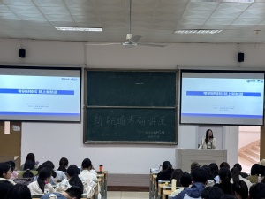 在考研讲座中,来自新航道考研机构的老师首先通过PPT、宣传手册等形式,向同学们分析了当前的考研形势。其次,还分析了国家的相关政策和考研的发展趋势,这些讲座内容让同学们对考研有了更加清晰的认识,对考研更加有信心,对自身的未来发展有了更为明确的把握。