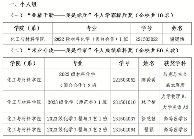 在校团委公布的2023-2024学年第二学期“学霸协议”活动评比结果中,我院获得个人学霸标兵奖1人、个人成绩单科奖4人、学霸宿舍奖1个、“学霸宿舍”入围奖1个、“学霸班级”入围奖1个。