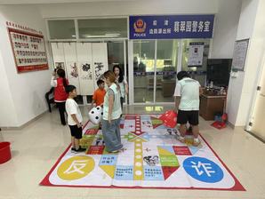 此外,实践队队员们还走进泉州市丰泽区东海街道翡翠社区,将专业巧思与趣味互动相融,巧妙设计海底火山爆炸实验,向小朋友们直观展示了毒品侵害身体的过程,让孩子们更加直观的感受毒品危害。在“反诈飞行棋”的逐步跃进与“反诈漆扇”的创意绘制中,识骗防诈的知识点化作了趣味盎然的行动指令与醒目标语。队员们精心设计的这些“可感可触”的互动,让严肃的反诈知识瞬间鲜活起来。小朋友们在沉浸式的游戏体验里,轻松掌握了识别诈骗陷阱、应对可疑信息的实用技巧,有效提升了自身“免疫力”。这既为社区筑起了一道生动的安全防线,也生动展现了新时代青年深入基层、服务社会的智慧与温度。