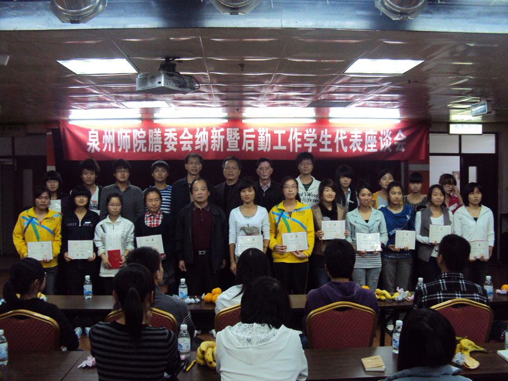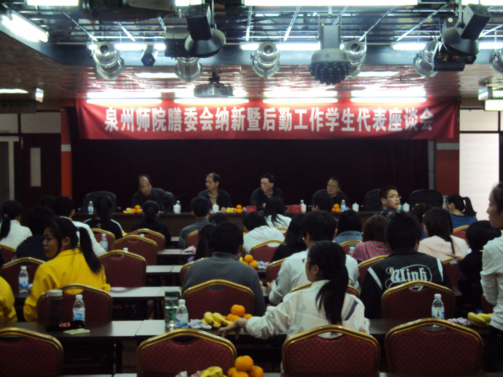 12月2日下午3时,后勤管理处林圣造副处长在行政楼二楼会议室主持召开了泉州师院膳委会纳新暨后勤工作学生代表座谈会。参加座谈会的有:后勤管理处、后勤服务集团、校学生会、校自律会、校广播电台、膳委会全体成员、各二级学院学生代表等。