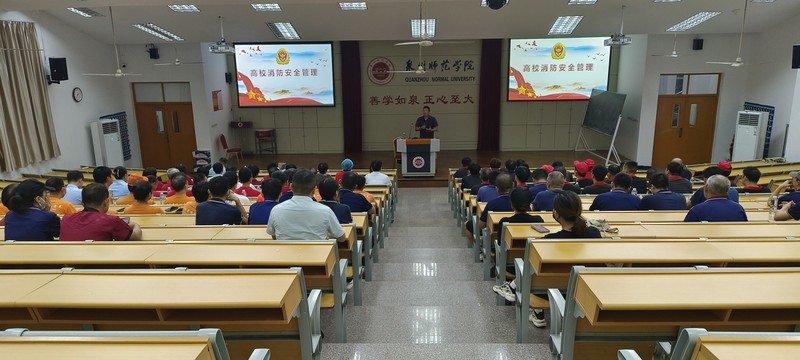 为进一步提升学校食堂员工的安全意识,普及消防知识, 增强自防自救能力,切实保障校园食堂消防安全,9月26日晚上,后勤管理处组织食堂餐饮从业人员,在中山纪念堂三楼学术报告厅开展消防安全知识培训。