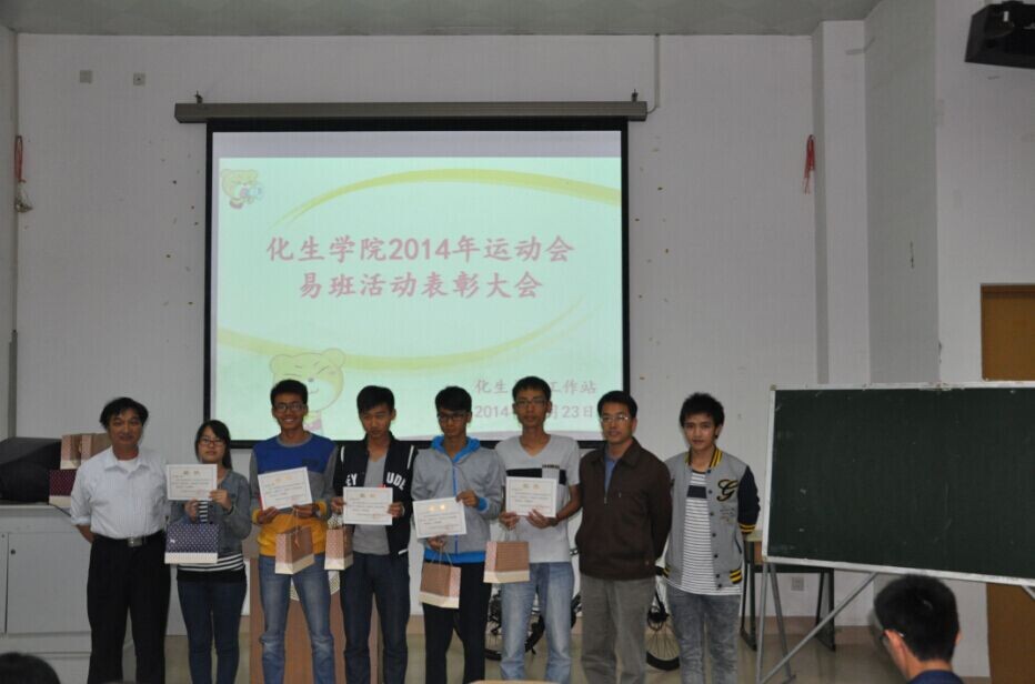 1123日晚上六点十分,我院在理工319教室召开32届校运会易班活动表彰大会。参加此次会议的有我院党总支书记蔡英卿教授,曾永强老师及各班学生干部等。