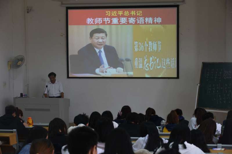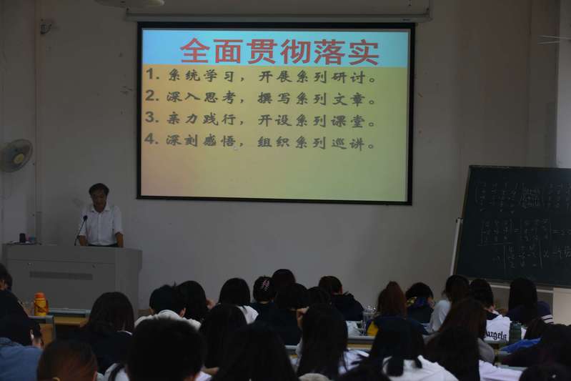 10月30日,海洋与食品学院全体学生骨干在理工楼320教室召开习近平总书记教师节重要寄语精神贯彻学习会,学院党委书记蔡英卿教授向学生骨干传达总书记教师节寄语精神。蔡英卿号召全体同学,特别是将来有志从事教师工作的同学,要认真学习习近平总书记教师节寄语精神,树立高尚的师风师德意识,发扬高度的责任担当精神,为新时期的教育工作作出新的贡献;同时作为在校学生,要懂得尊重老师、感念师恩,上课时遵守课堂秩序,生活中注意文明礼貌。