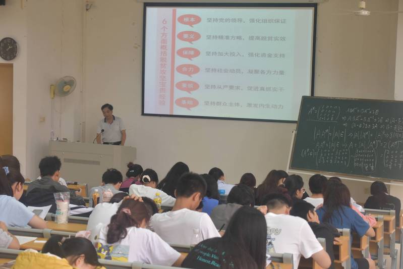 11月19日,海洋与食品学院师生在理工楼320教室学习《习近平谈治国理政》第三卷第5专题、第6专题和第7专题。学院党委书记蔡英卿教授主持学习教育会,学院全体教职工、学生党员和主要学生干部参加学习。