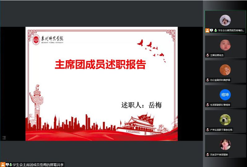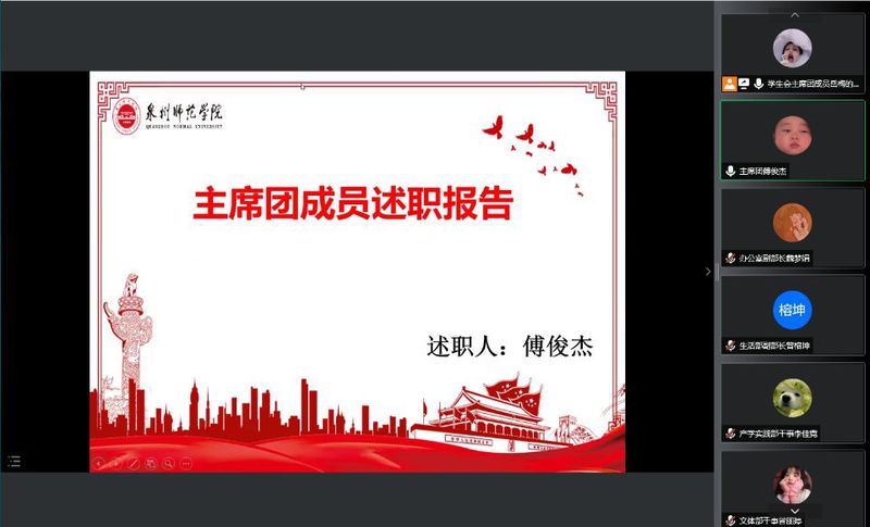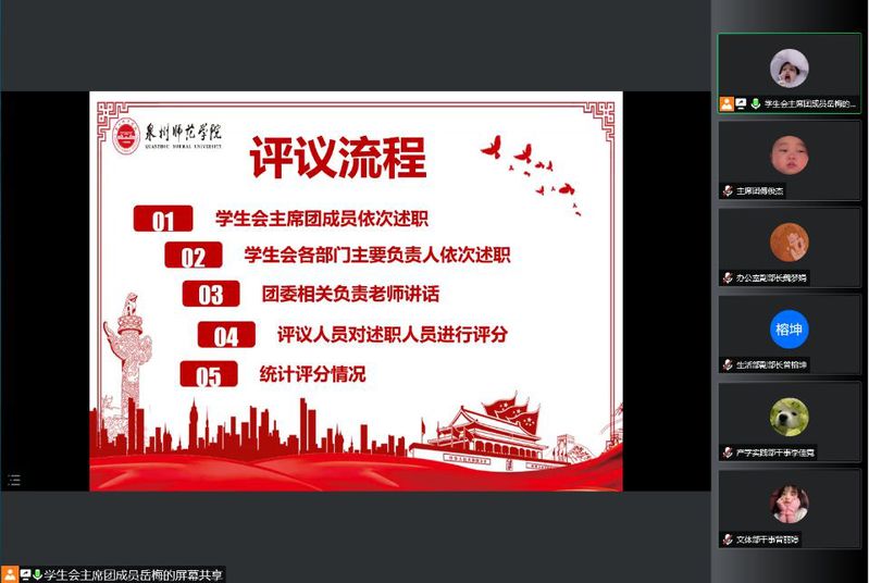 7月6日,海洋与食品学院团委组织召开2021-2022学年第二学期学生会主要工作人员线上述职评议大会。学院团委副书记王哲芳、辅导员、学生会主要工作人员参加会议。