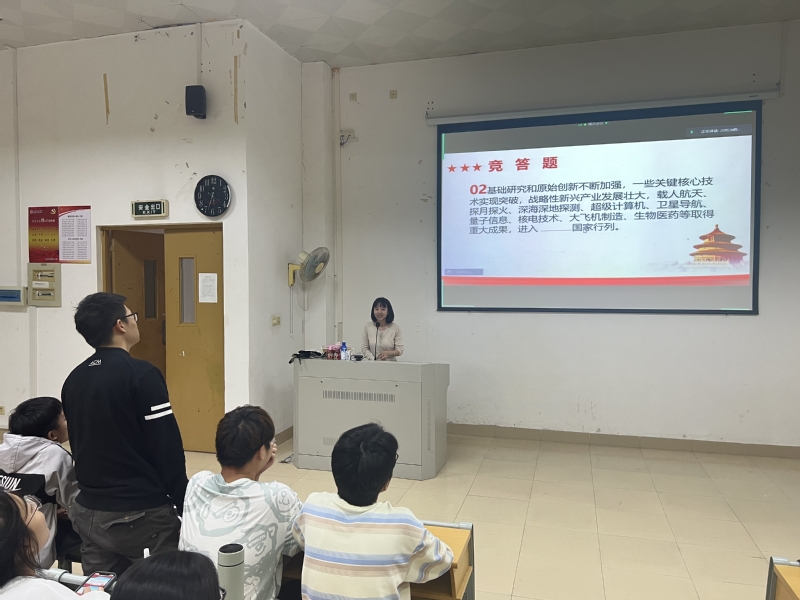 宣讲后,王哲芳采用竞答的方式与同学们互动。竞答题目包括党的二十大精神、国民经济、文化、教育、等相关知识,旨在分层次、分类别帮助同学们学习并了解党的二十大相关知识。竞答的方式深受学生喜爱,同学们积极参与,氛围热烈,有效巩固了学习效果。最后,王哲芳寄语同学们要扣好人生的第一粒扣子,树立远大理想,深化对习近平新时代中国特色社会主义思想的认识,努力成长成才、担当奉献,让青春在全面建设社会主义现代化国家的实践中绽放绚丽之花。