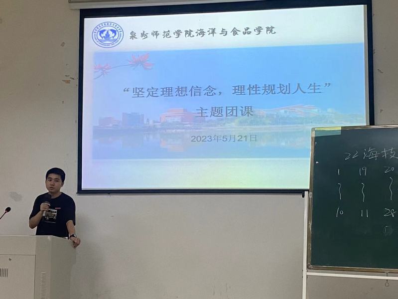 学院团干部、辅导员乐生煊为2022级生科专业的同学们上了一堂主题为“坚定理想信念,理性规划人生”的团课,重点学习了党的二十大精神和习近平总书记关于理想信念教育的重要论述。采取分组讨论的方式对学习内容进行了深入的研讨,通过学习,同学们纷纷表示将坚定理想信念,紧跟党的步伐,不断提高自身素质,勇于创新,艰苦奋斗,锤炼出高尚的品格,成为祖国栋梁”。课堂最后,乐生煊寄语同学们要立志做有理想、敢担当、能吃苦、肯奋斗的新时代好青年,以实际行动践行‘请党放心 强国有我’的誓言。