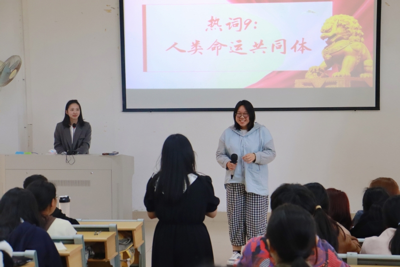 学院团委副书记、辅导员王哲芳结合《形势与政策》课程第三讲“开创高质量发展新局面”,围绕学习宣传贯彻党的二十大精神主题,为同学们阐释了“把握新发展阶段,贯彻新发展理念,构建新发展格局,推动高质量发展”的内涵要义。课堂还特别开展了“习近平新时代中国特色社会主义思想热词你‘话’我猜”活动,深受同学们的喜爱,加深了同学们对新思想的理解。通过学习,同学们纷纷表示将自觉把习近平新时代中国特色社会主义思想作为枕边书、案头卷,在深学细照笃行上下功夫,切实把马克思主义最新理论成果的“看家本领”学扎实,并且全面落实到学习生活中、体现在实际行动上。