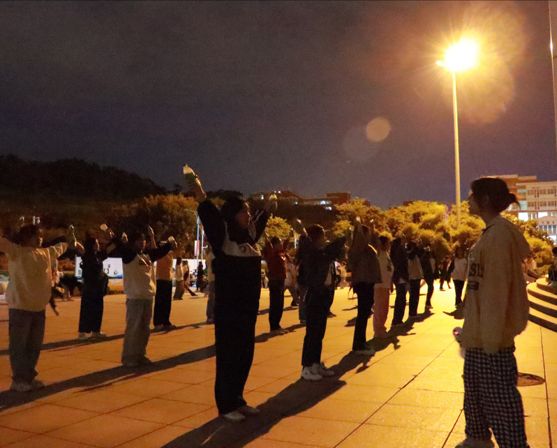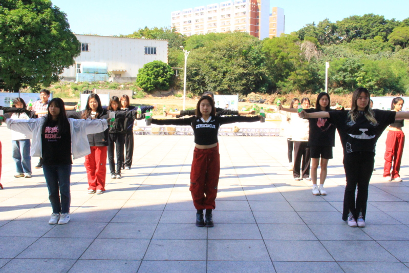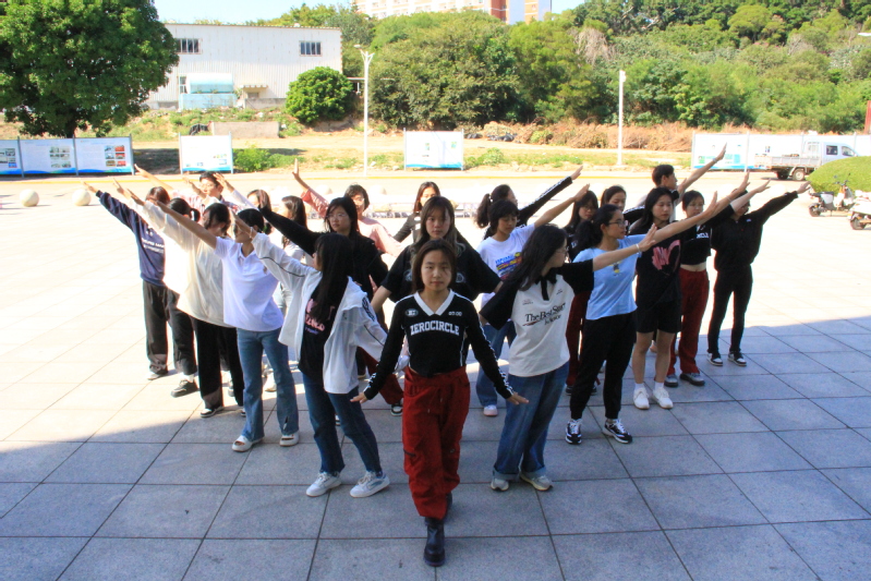 在此期间负责排舞的学姐们也功不可没,她们带领排舞队员们对动作精细打磨,调整细节,她们与排舞成员们同进同退。