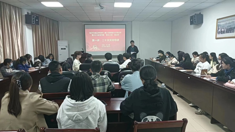 12月3日,海洋与食品学院举办第11期入党积极子培训班暨2023秋季学期“青马工程”培训班第一讲,学院党委专职组织员、辅导员安毅为入党积极子学员导读二十大党章。