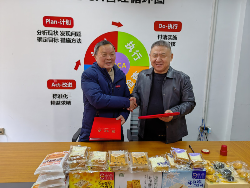 12月22日上午,海洋与食品学院院长袁建军教授、副院长郑宗平教授及食品科学与工程专业教师一行5人到焙之味食品(福建)有限公司考察交流。