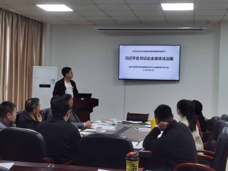 会上,学院党委书记蔡志荣还部署应知应会党内法规和法律法规规章专题学习之习近平法治思想专题学习,导读习近平总书记《论坚持全面依法治国》,要求中心组成员自主学习《习近平关于全面依法治国论述摘编》《习近平关于依规治党论述摘编》《习近平法治思想学习纲要》《习近平法治思想学习问答》等读本,深入学习贯彻习近平法治思想;会议强调,要将深入学习习近平法治思想与深入学习贯彻习近平新时代中国特色社会主义思想和党的二十大精神紧密结合起来,与学习贯彻习近平总书记关于教育的重要论述和关于教育强国建设的重要讲话精神紧密结合起来,与巩固拓展主题教育成果、深化拓展“三争”行动紧密结合起来,与服务师生、立德树人的业务工作实践结合起来,努力推进学院高质量发展。