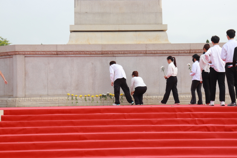 学院团委素质拓展部部长连华萍同学在纪念碑前以“清明雨纷纷,白花纪先人”为引发表了感言,深情回顾了革命先烈们为祖国和平与人民幸福英勇斗争的光辉历程;呼吁全体团员要继承和发扬革命先烈的英勇精神,不怕吃苦,勇于攀登知识高峰,追求卓越成就;同时,在时代发展的洪流中要砥砺前行,不畏艰难,勇挑重担,为实现中华民族伟大复兴的中国梦贡献青春力量。