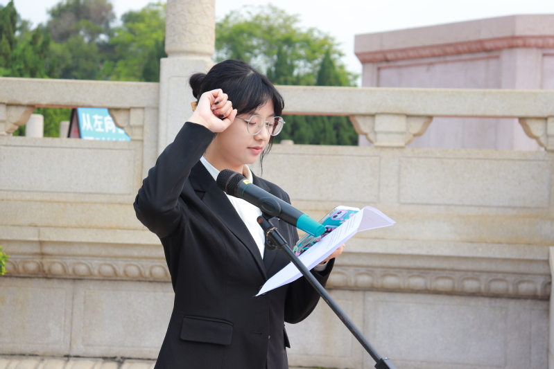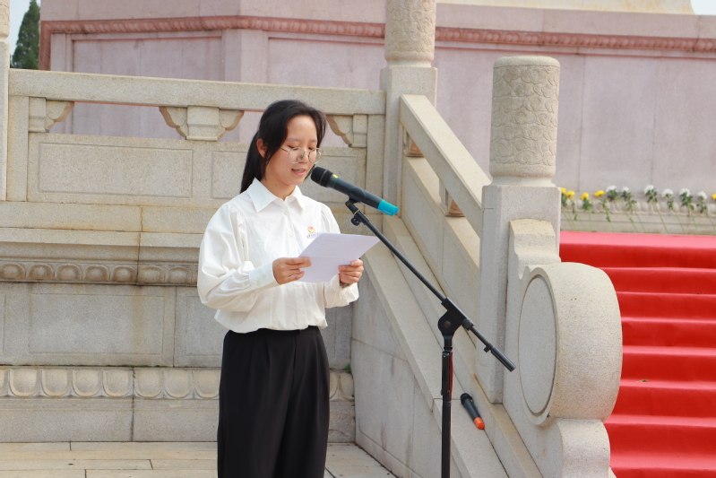 在庄严雄壮的国歌声中,活动正式拉开帷幕。学院团委学生副书记曾钰云同学带领全体团员代表整齐列队,肃立垂首,向革命先烈表达深深的哀思与崇高的敬意。曾钰云号召大家,要铭记历史,缅怀先烈,向革命先烈学习,肩负起新时代青年的责任与使命。
