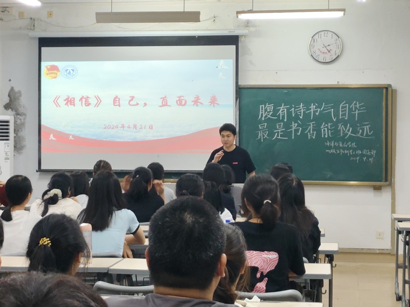学院团委委员罗晨港以“书香致远,墨卷至恒”为题,向同学们介绍了“世界读书日”的由来、书籍材料的发展历史、名人的读书故事、高效阅读的方式等,并鼓励同学们踊跃发言,分享自己喜欢的书籍及读后感。她呼吁同学们深刻领悟阅读的独特魅力与深厚内涵,积极培养持之以恒的阅读习惯,在书海中汲取智慧的养分,为成长之路注入源源不断的活力。