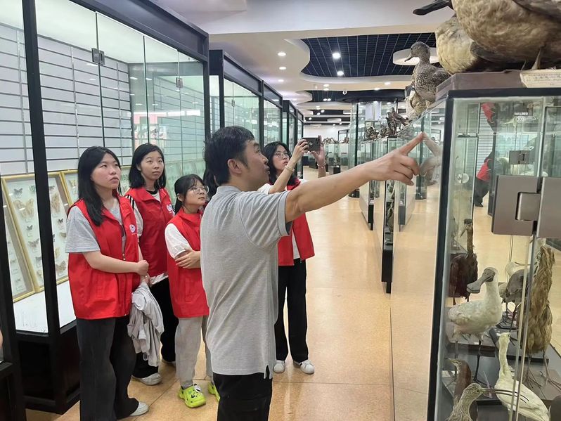标本馆内,志愿者们耐心且热情地引导着孩子们逐一参观馆内陈列的各式标本,包括栩栩如生的昆虫类标本、形态各异的鸟类标本等。在志愿者们精准且生动的解说下,孩子们不仅被标本展现的奇妙生物现象所吸引,更深刻领悟了生物多样性所承载的宝贵价值。
