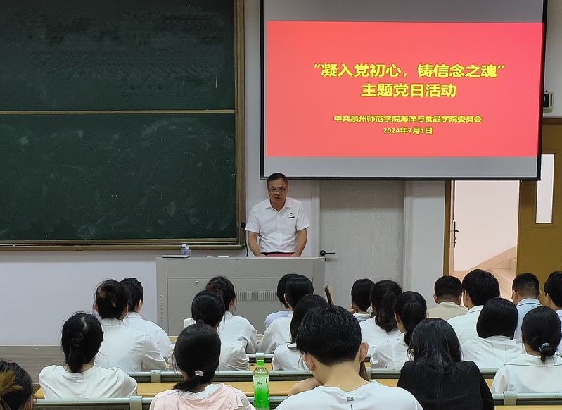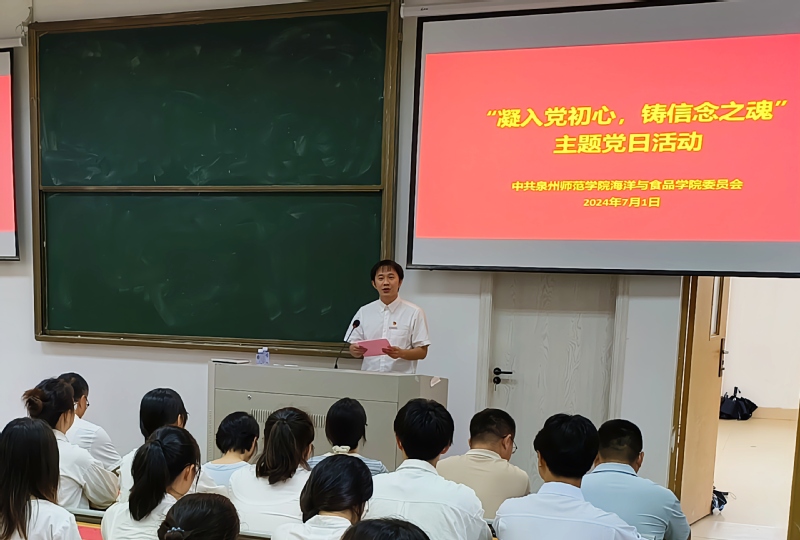 7月1日,海洋与食品学院党委开展“凝入党初心,铸信念之魂”主题党日活动。学院党委书记蔡志荣、党委委员、各党支部书记、各党支部新入党的预备党员以及各党支部入党积极分子代表参加活动。学院党委委员洪钦赐主持活动。