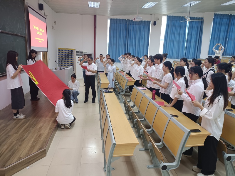 学院党委委员陈洪彬宣布了23名新党员名单,随后举行了新党员入党宣誓、老党员重温誓词仪式,大家庄严肃穆、举起右臂,面向鲜红的党旗,在蔡志荣的领誓下,新、老党员齐声铿锵有力宣读了入党誓词。