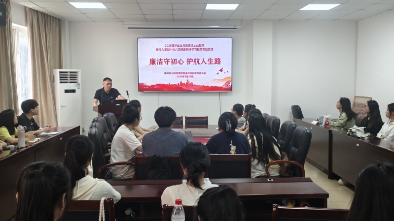 5月21日,学院党委副书记、纪委书记刘礼元在学院449会议室为2025届毕业生党员讲授“廉洁守初心,护航人生路”专题党课。学院2025届毕业生全体党员参加了本次党课。