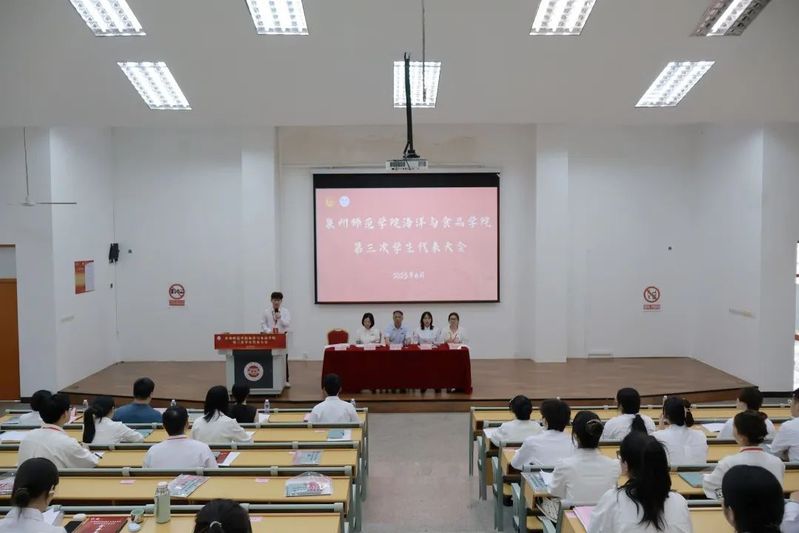 6月5日下午,海洋与食品学院第三次学生代表大会在孙中山大礼堂五楼阶梯教室顺利召开。学院党委副书记刘礼元、校学生会执行主席蔡诗琳、学院团委副书记王哲芳、全体辅导员以及全院56名学生代表出席大会。