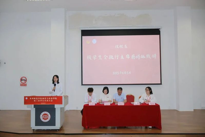 会上选举产生了海洋与食品学院第三届学生会常任代表(刘赫伊、杨少君、陈思、李想、陈佳鑫、李昭坪、翁婉灵)和主席团成员(陈燕雅、林雯静、黄彬彬)。