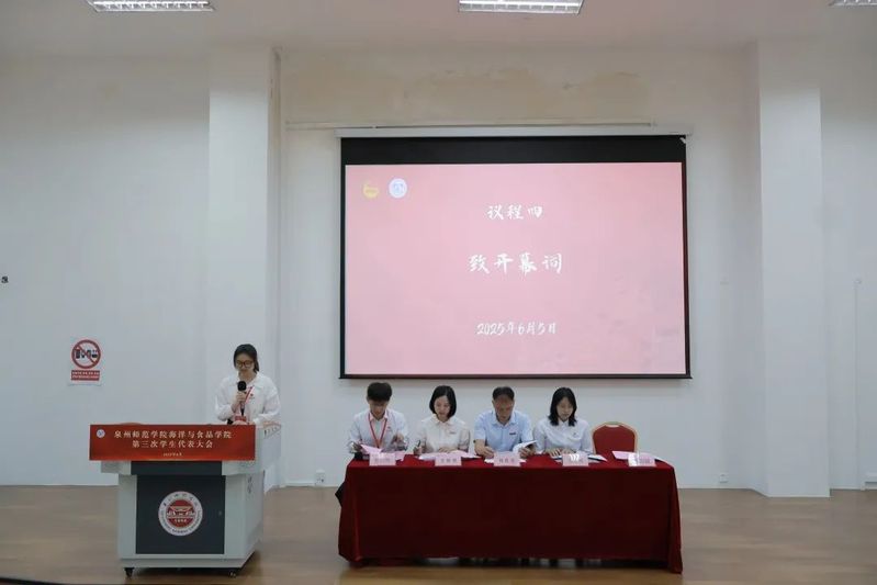 开幕式上,受学院党委委托,学院党委副书记刘礼元向大会的召开致以热烈祝贺,他充分肯定了学生会过去一年的工作成效,指出其在思想引领、改革创新、服务同学等方面作出的积极贡献,展现了海食青年的使命担当。并对全体青年学生提出三点希望:一是强化理论武装,勇为伟大征程的“奋进者”;二是锤炼道德品格,敢为躬身实践的“先行者”;三是淬炼专业能力,善为时代浪潮的“领航者”。同时,他希望新一届学生骨干接好接力棒,不断开创学生会组织工作新局面,为学校建设特色鲜明的一流应用型大学作出更大贡献,在推进强国建设、民族复兴征程中彰显青年担当。