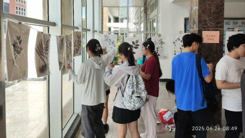 6月26日,我院首届药用植物标本制作竞赛于邱天生实验楼一楼门厅隆重举办。学院党委书记蔡志荣、副院长(主持工作)梁鹏、生物科学系主任陈细香亲临现场指导,副主任王艺璇,植物学课程组老师及2023级、2024级学生参加。