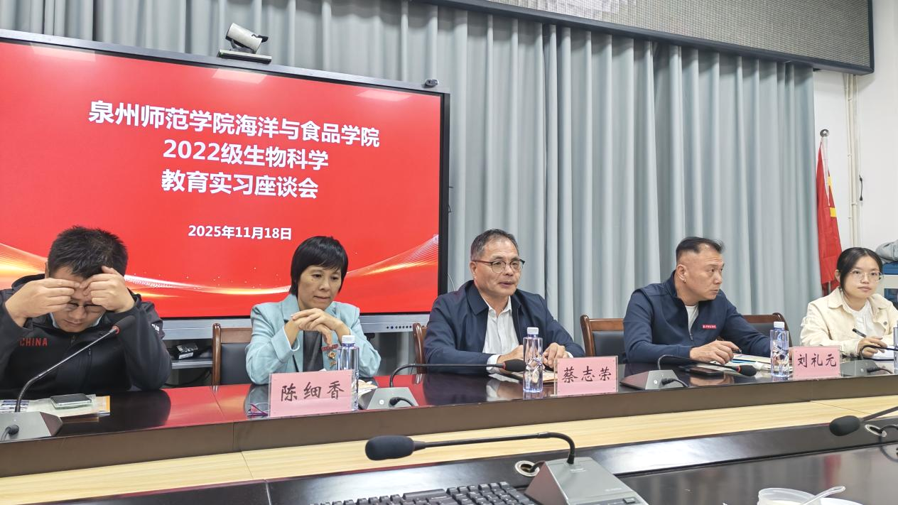 为深入了解实习生在岗实践情况,传递学院关怀,推进校地协同育人,11月18日下午,学院党委书记蔡志荣、党委副书记刘礼元、生物科学系主任陈细香、食品科学与工程系主任陈洪彬、带队老师陈婉婷一行5人,前往泉州经济技术开发区实验学校慰问2022级生物科学专业教育实习生。副校长苏文锻、指导老师黄淑琼、潘娅玲、庄玉真等热情接待并参与座谈。