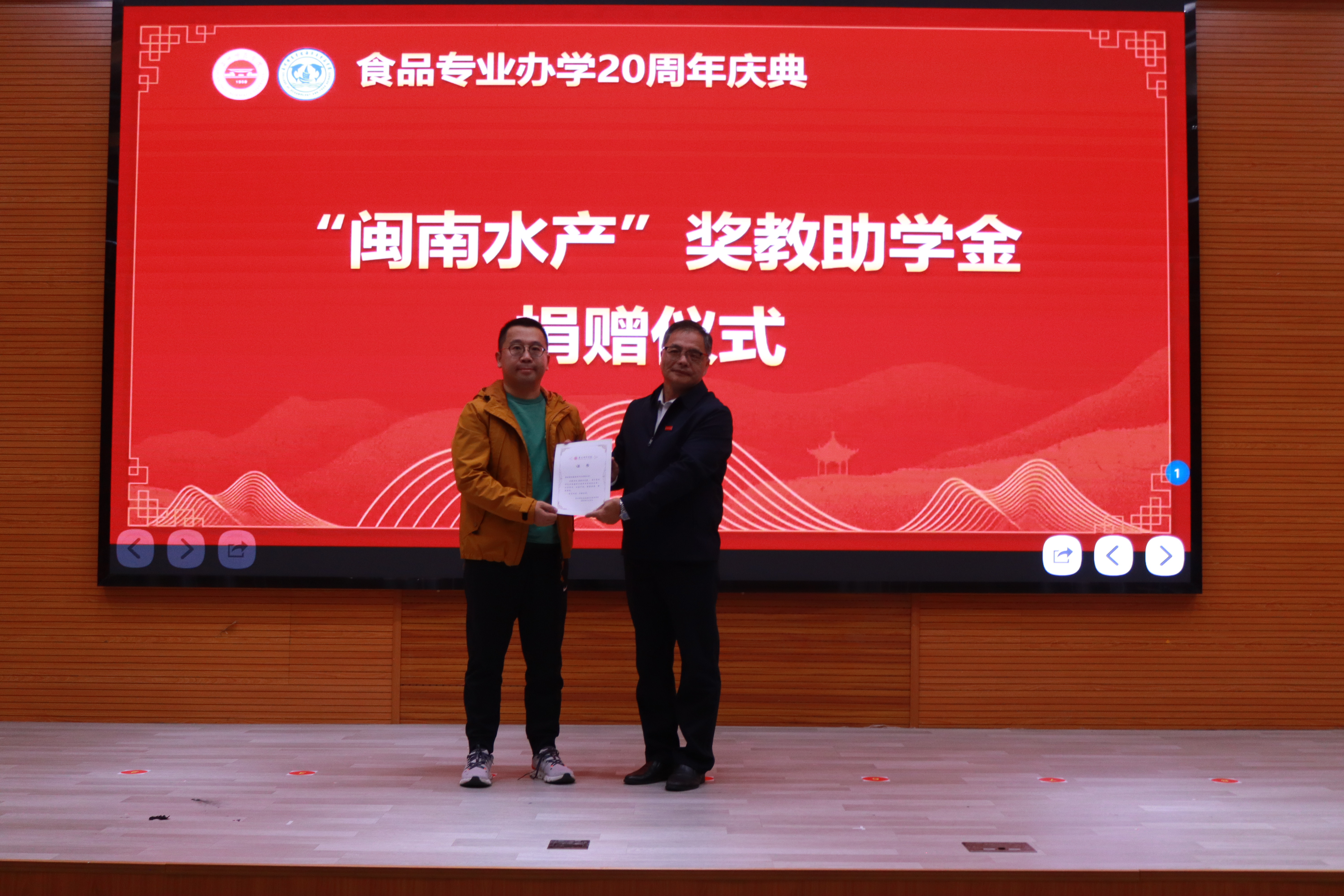 活动现场还举行了“闽南水产”奖助教学金捐赠仪式,闽南水产公司心系教育,慷慨解囊,捐资助学,企业董事、副总经理施金堆为首届获奖师生一一颁奖,彰显了企业心系民生、情牵教育的博大情怀与高度的社会责任感。此外,还举行了行业导师聘任仪式,聘任安记食品、亲亲食品、品鉴食品、行业协会高管担任行业导师,帮助学生了解行业最新动态、岗位能力模型,使人才培养更具针对性和实用性。