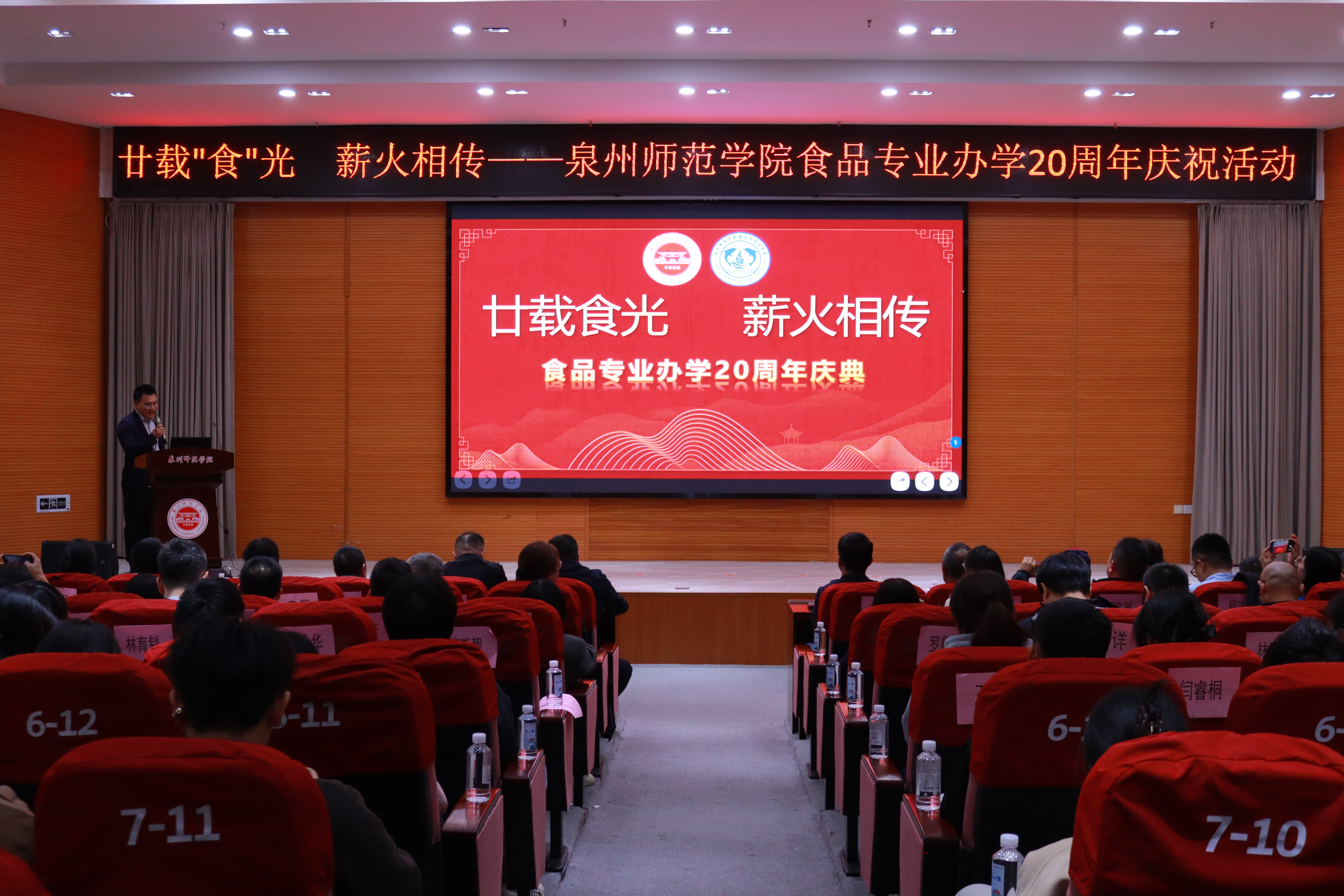 11月22日下午,英国威廉希尔公司官网海洋与食品学院食品专业办学20周年庆活动在学校特教大楼第二学术报告厅隆重举行。闽南科技学院、黎明大学、泉州市食品行业协会、泉州市营养健康协会、亲亲食品、安记食品、闽南水产等在泉食品类高校及行业协会龙头企业代表,学院历任领导、退休教师、各届校友及师生代表共180余人齐聚一堂,共庆专业二十载华诞,共话行业发展新蓝图。活动由学院食品科学与工程系负责人陈洪彬主持。