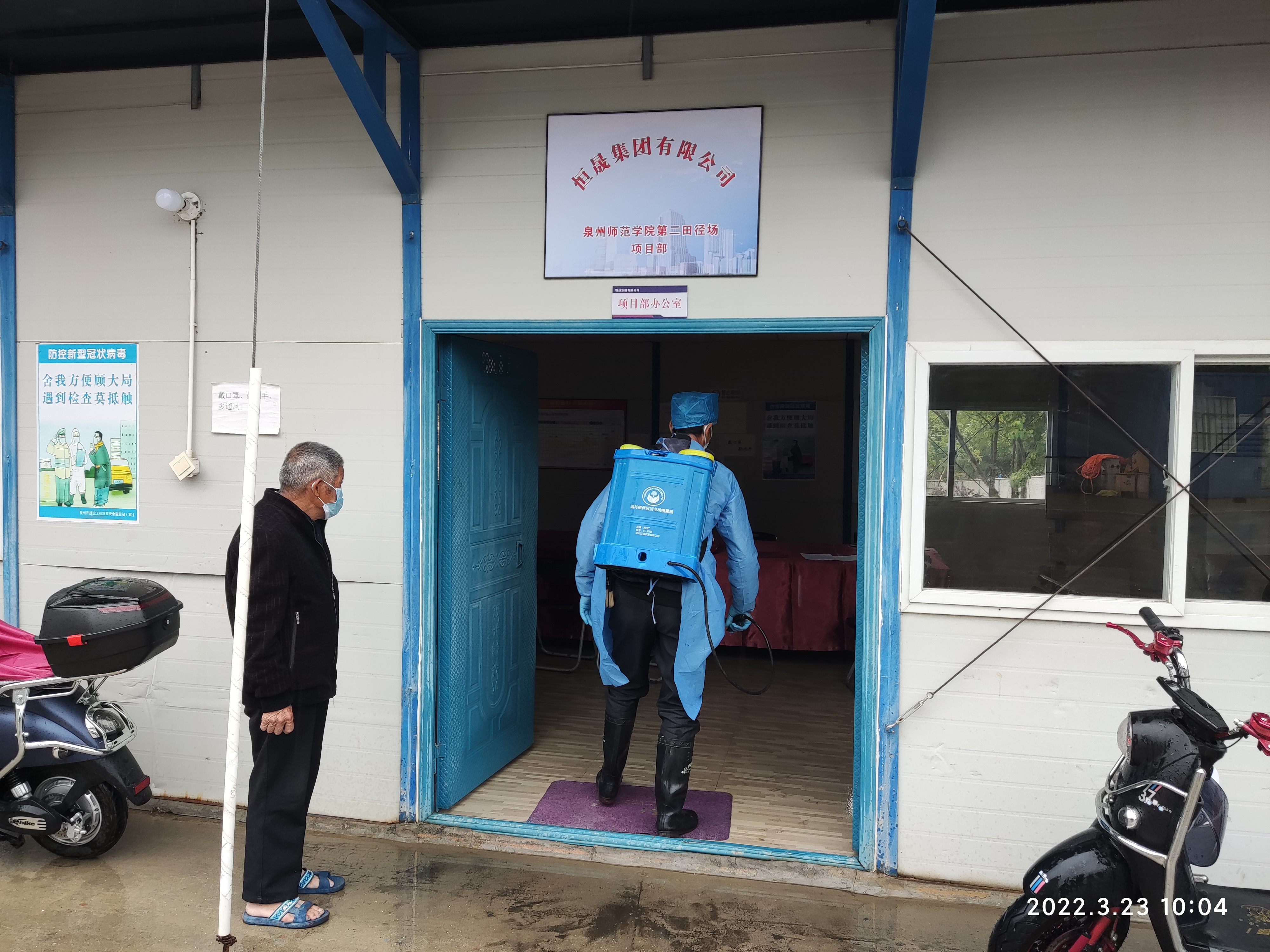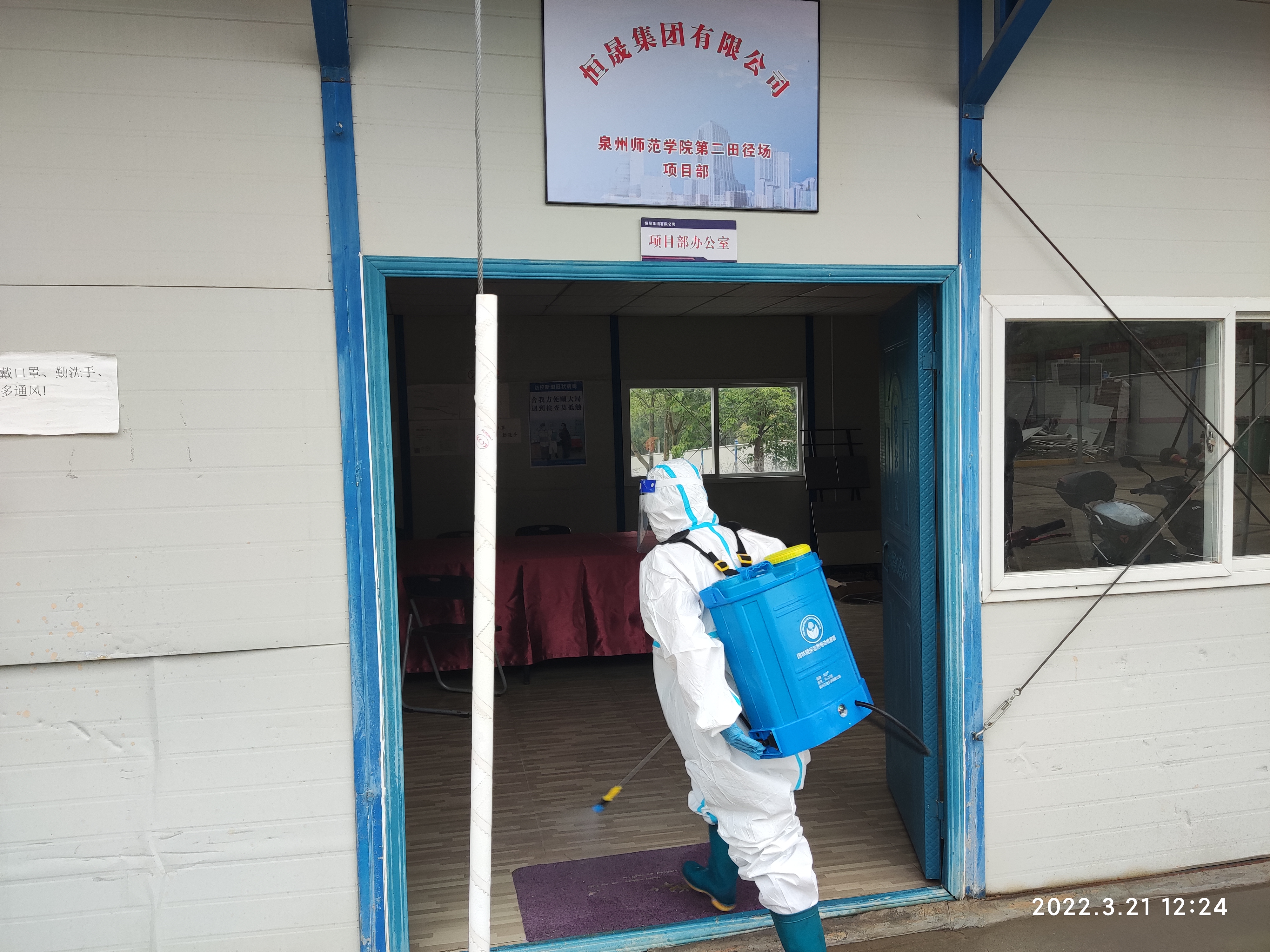 2022年3月13日以来,基建处督促各在建项目加强现场消杀力度,并联系专业消杀公司对各在建项目现场进行消杀。