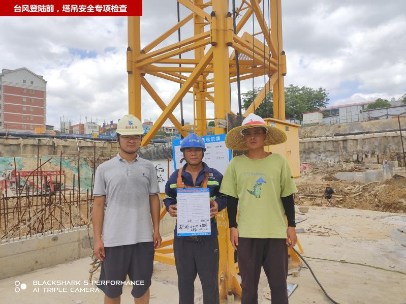 针对塔吊等风险性较高的起重机械,工科大楼项目部立刻联系专业检修人员,对塔吊进行灾后检修。