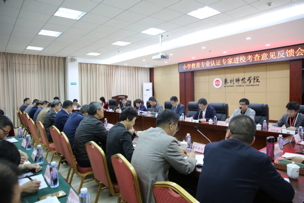 12月4日-7日,福建省教育评估研究中心组织对我校小学教育专业进行师范类专业第二级认证现场考查。认证专家组由天津师范大学初等教育学院原院长杨宝忠教授任组长,重庆第二师范学院教师教育学院院长江净帆教授、南昌大学教育学院许祥云教授、洛阳师范学院党委副书记宋文献教授、赣南师范大学教育科学学院院长李东斌教授、河北石家庄裕东小学教育集团校长李丽英正高级教师、浙江师范大学教师教育学院院长周跃良教授为成员。省教育厅教师工作处处长杨振坦、省教育评估研究中心副主任范菁,泉州市教育局副局长毛伟雄,校领导屈广清、高云程、林伟、杨晓翔,相关职能部门负责人、有师范专业的二级学院党政负责人、全校师范类专业负责人及校外实践教学基地的校领导参加了认证相关环节。闽南师范大学、宁德师范学院、福建幼儿师范高等专科学校、泉州幼儿师范高等专科学校、闽江师范高等专科学校等省内师范类高校领导观摩了认证反馈会。
