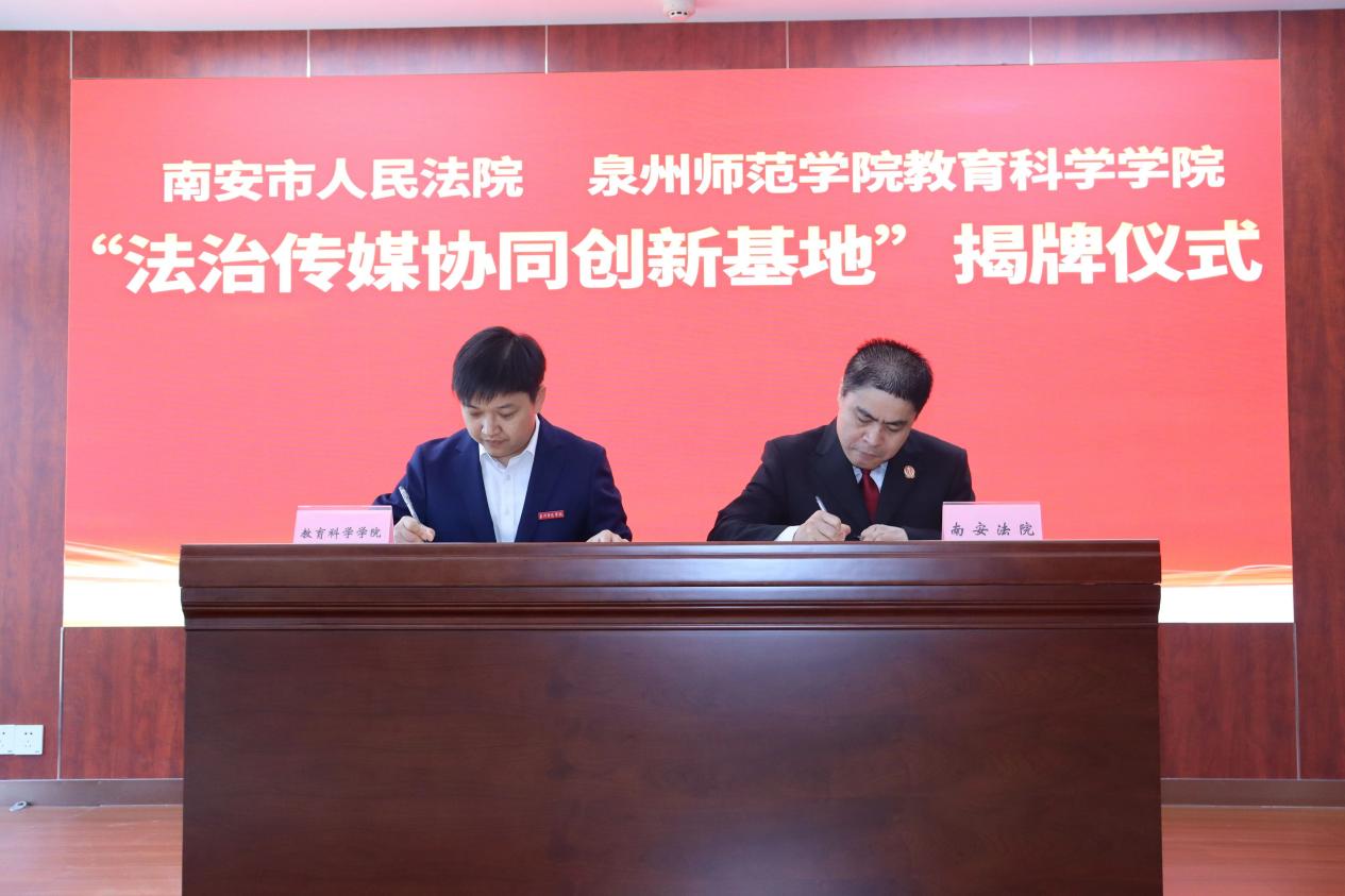 学院与南安法院双方负责人共同签订《法治传媒协同创新基地框架协议》