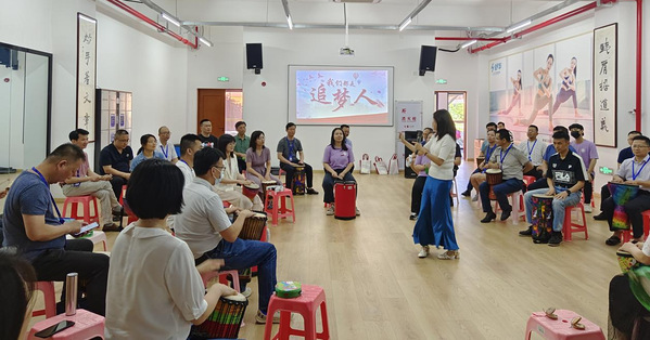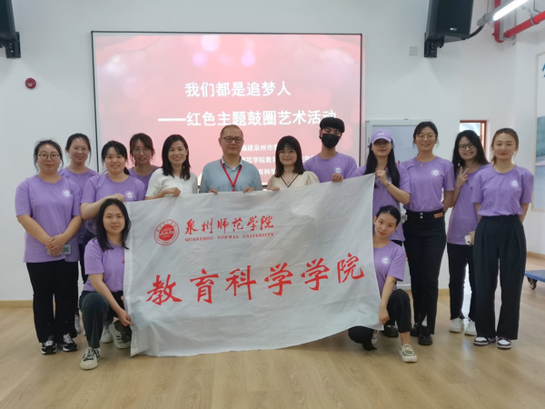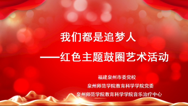为深入开展学习贯彻习近平新时代中国特色社会主义思想主题教育,进一步提升党建示范引领作用,构建党建共同体,切实以学促干,教育科学学院组成党员团队,发挥专业优势,走进泉州市委党校,开展“我们都是追梦人”红色主题鼓圈艺术融合教育活动。教育科学学院副院长邵华、泉州市委党校机关党委专职副书记张诺维、教育科学学院艺术教育中心副主任陈佳、我校2022级音乐治疗专业全体党员和硕士研究生、泉州市委党校第95期科级干部进修班的学员共60余人参与此次活动。