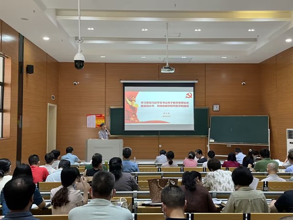 6月8日下午,教育科学学院院长雷培梁以《学习贯彻习近平总书记关于教育的重要论述 推进高水平、有特色教学研究型学院建设》为题,为学院教工党员讲授专题党课。