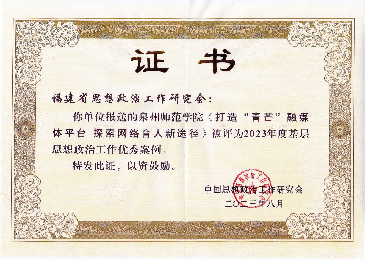 近日,中国政研会发布《关于印发<中国政研会2023年度基层思想政治工作优秀案例名单>的通知》。教育科学学院思想政治工作案例《打造“青芒”融媒体平台 探索网络育人新途径》入选中国政研会2023年度基层思想政治工作优秀案例。