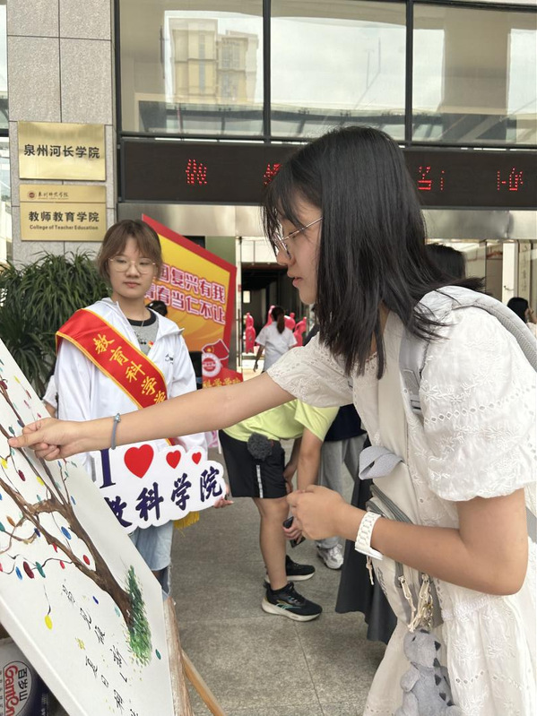 暖情服务,育人育心,迎新报到“点对点”。教育科学学院发挥学生党员先锋模范作用,在卡通人物“青芒”号召与集结下,组建“教师党员志愿服务队”和“学生党员先锋岗”。报到区、签到区、展示区、宿舍区等各个地方都能看到教育科学院党员先锋岗和爱心志愿者团队成员们忙碌的身影,青芒玩偶吸引新生驻足留念拍照,用实际行动温暖人心。