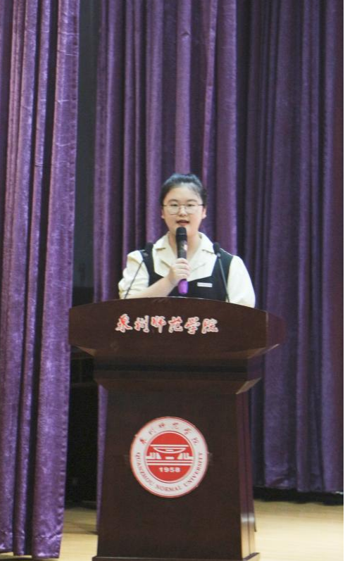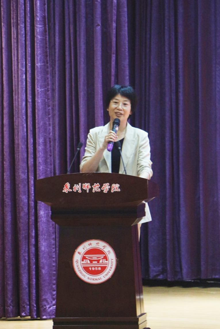 教师代表、正高级教师、福建省特级教师、学前教育系刘雪芬结合热播电视剧《人世间》,勉励新生在学习上做勤奋刻苦的周秉义,在生活上做坚强乐观的郑娟,在交往上做坦诚热情的周秉昆,努力提升自身的学习和工作能力,为成为一名“四有”教师做好知识和能力的储备。
