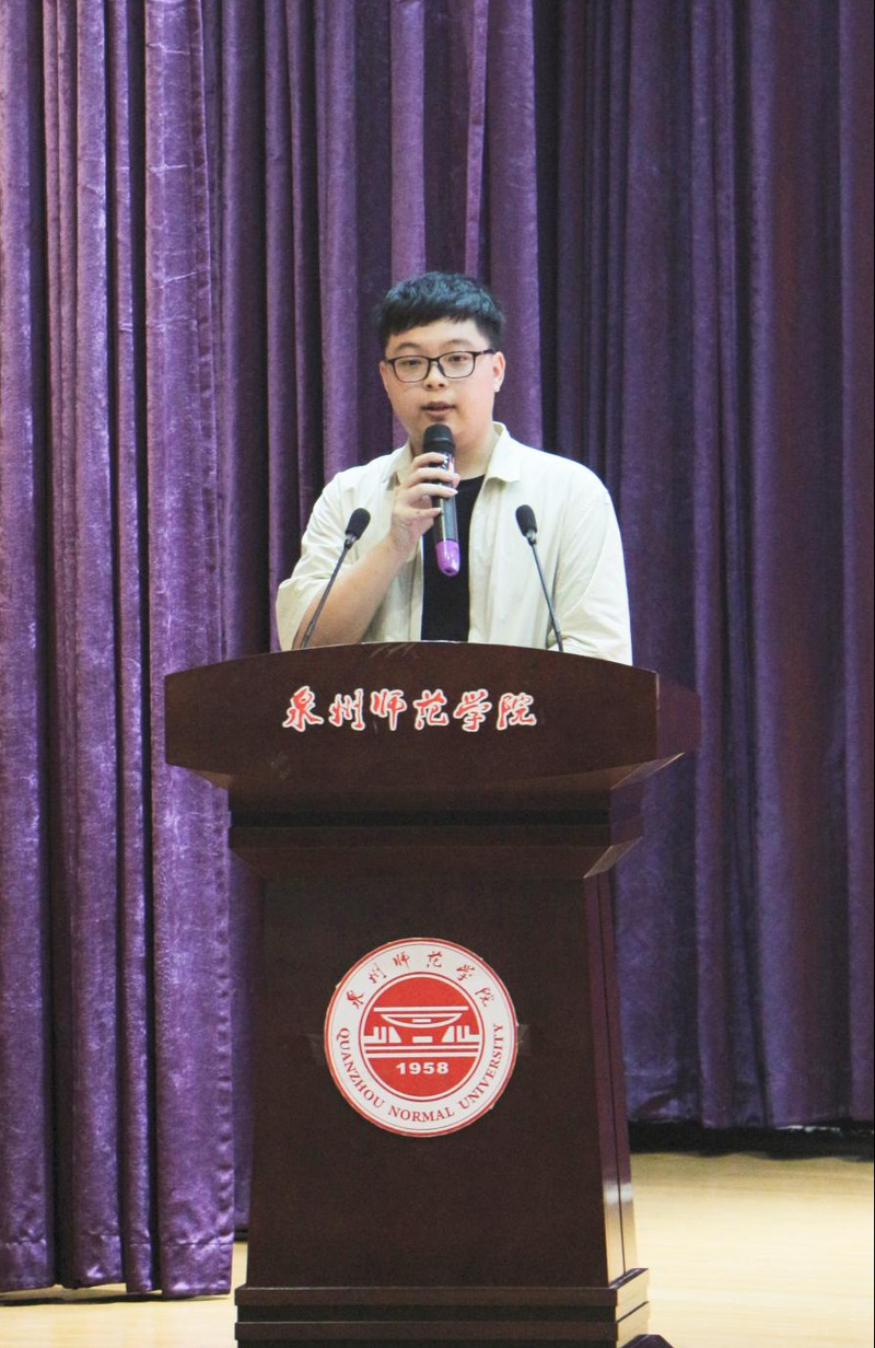 研究生新生代表林启丞分享了自己在教育一线工作两年的所思所想,在教育工作中深切地感受到了心理治疗与心理辅导的重要性,从而坚定自己重新踏上求学之路的决心。同时勉励全体新生要积极向上,砥砺前行,虚心学习,不忘初心,勇于担当起新时代中国青年的时代重任。