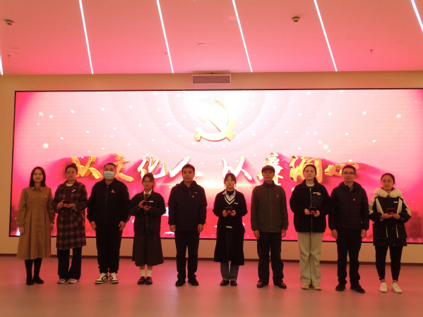 参观学习之后,学院党委副书记、纪委书记刘宗安,学院党委委员甘昭良、吴伟信,学生党支部书记杨碧敏、陈宸,为新入党党员代表颁发党员徽章。