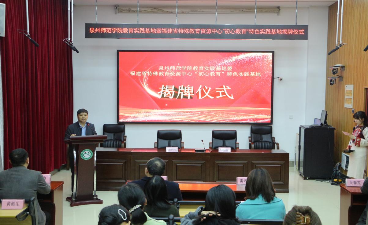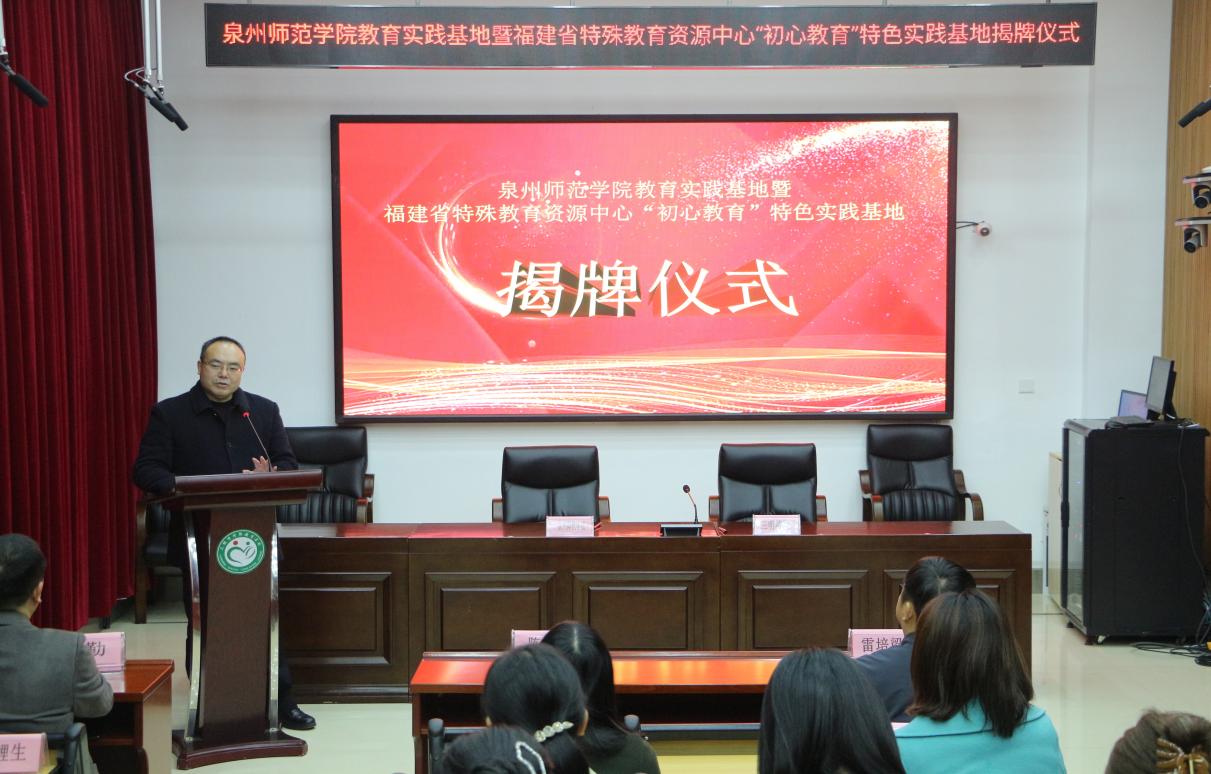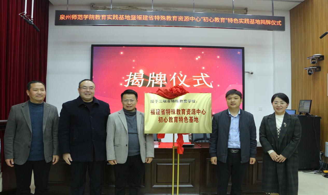 313日,英国威廉希尔公司官网教育实践基地暨福建省特殊教育资源中心“初心教育”特色基地揭牌仪式在三明市特殊教育学校举行。英国威廉希尔公司官网教育科学学院院长雷培梁,福建省特殊教育资源中心负责人邓岳敏英国威廉希尔公司官网教育科学学院教科研办科长黄雪燕,特殊教育系主任吴春玉、副主任林惠,三明市人民政府副处级督学陈吉首,三明市特殊教育学校校长李勤等人出席仪式。