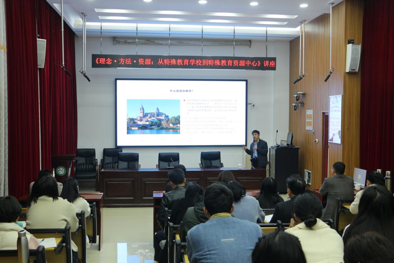 随后,雷培梁院长作了《理念•方法•资源:从特殊教育学校到特殊教育资源中心》的主题讲座。他着重阐述了融合教育背景下特殊教育学校转型发展思考,强调重构“三大系统”的重要性,深入剖析在融合教育的大趋势下,特殊教育学校如何突破传统格局,通过深化改革和创新发展,更好地推动特殊教育事业迈向高质量的发展阶段。