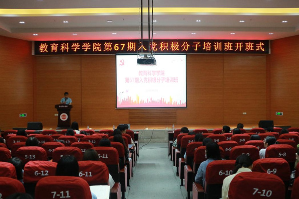 4月25日下午,教育科学学院第67期入党积极分子培训班在特教大楼第二学术报告厅正式开班。学院党委副书记、纪委书记刘宗安出席开班仪式,第67期入党积极分子培训班全体学员参加开班式,开班式由培训班班主任、学院党委组织员杨碧敏主持。