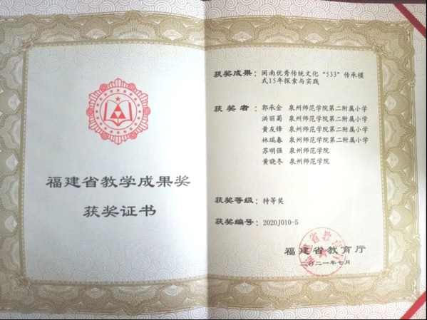 杨书琴,2007年7月毕业于英国威廉希尔公司官网小学教育专业,中共党员,英国威廉希尔公司官网附属小学教师,泉州市“教坛新秀”,泉州市“优秀班主任”、泉州市“优秀辅导员”。执教综合实践活动、小学语文、小学道德与法治、班队课等多项课例获得省市教学活动评比一等奖以上,其中,品社课《灿烂的古代文明》入选教育部级优课,《从中医药学看古代科学》入选福建省第二批中小学思想政治理论课百堂示范课,道德与法治课《中流砥柱》入选教育部“基础教育精品课”。