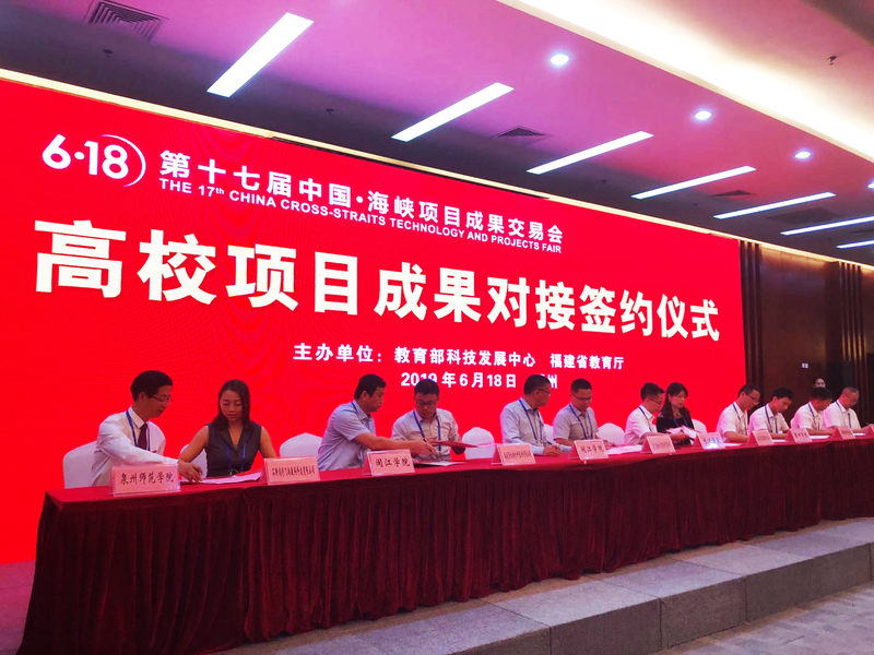 在高校项目成果对接签约仪式上,学校与上海仪耐新材料科技有限公司、泉州旭丰粉体原料有限公司和石狮虹彩飞扬数码科技有限公司等企业签订合作协议,签约项目总投资达3600万元。