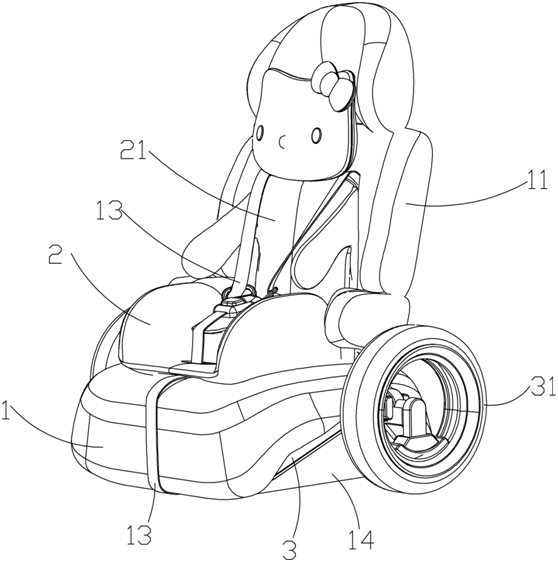 本实用新型公开了一种两用儿童安全座椅,包括底座,底座上设有靠背,靠背设有向前延伸的扶手,底座上设有婴儿软坐垫,靠背上设有与软坐垫连接的软靠背,底座和靠背连接设有安全带,底座的两侧均设有前支架槽,前支架槽上铰接设有前支架,前支架槽设有弹簧扣,底座的底部中间设有后支架槽,后支架槽过盈配合铰接设有后支架,前支架设有大前轮,后支架设有小后轮,本实用新型在乘车时可以做为普通安全座椅使用,在下车时可以做为儿童手推车使用。产品外观结构设计完整,可进行手板制作和小批量试产。(专利号:ZL 2017 2 0596012.4)