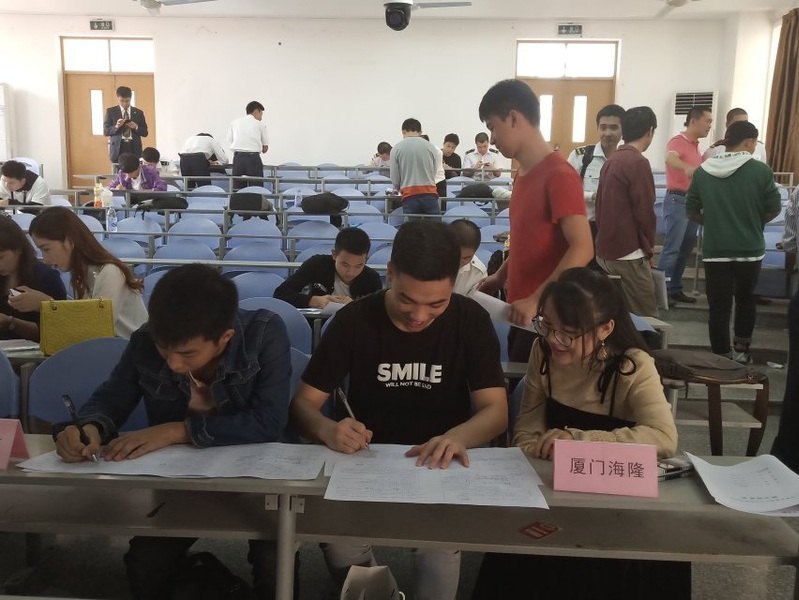 首先,由李小兵老师主持会议并向准备应聘的同学们介绍今天所到的九家公司,介绍完成之后,由苏书记介绍我院航海类专业学生培养情况,包括航海学院每年开展的英语角培养航海类专业学生英语水平,每年入学进行新生航海专业教育,航海类专业学生赴台湾交流学习,船员教育培训,学院实行的半军事化管理,提升学生综合素质等方面,并分析了近年来的就业情况,强调今年的大学毕业生为八百六十万,数据再次刷新,堪称最难就业的一年,希望同学们能够调整好心态,摆正好位置倍加珍惜招聘企业对我们学生提供的就业机会,并在未来的工作岗位上认真负责,发扬"善学如泉,正心至大"校训 。随后,李小兵老师再次强调本次双选会的重要性并提醒毕业生们慎重选择,抓紧选定企业。